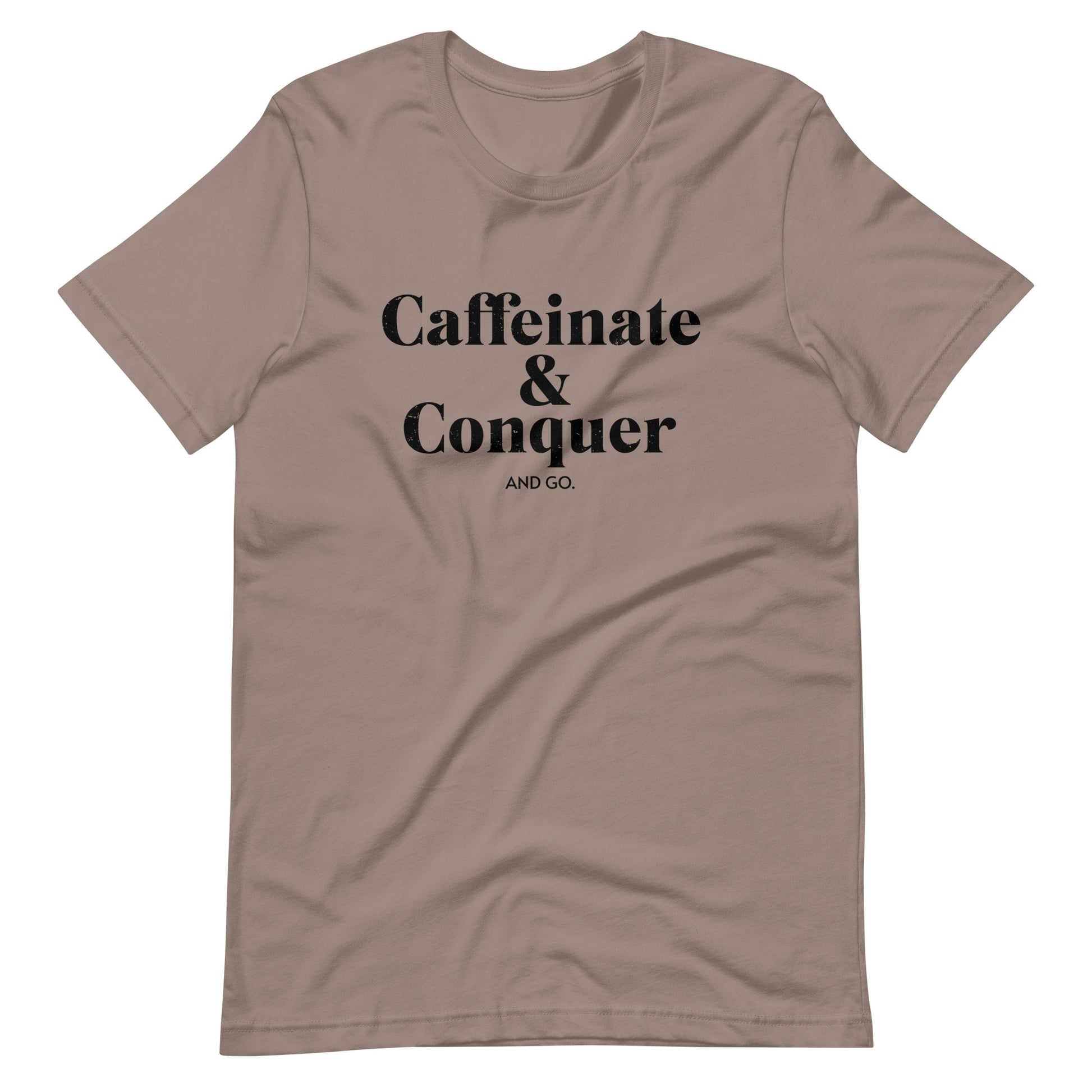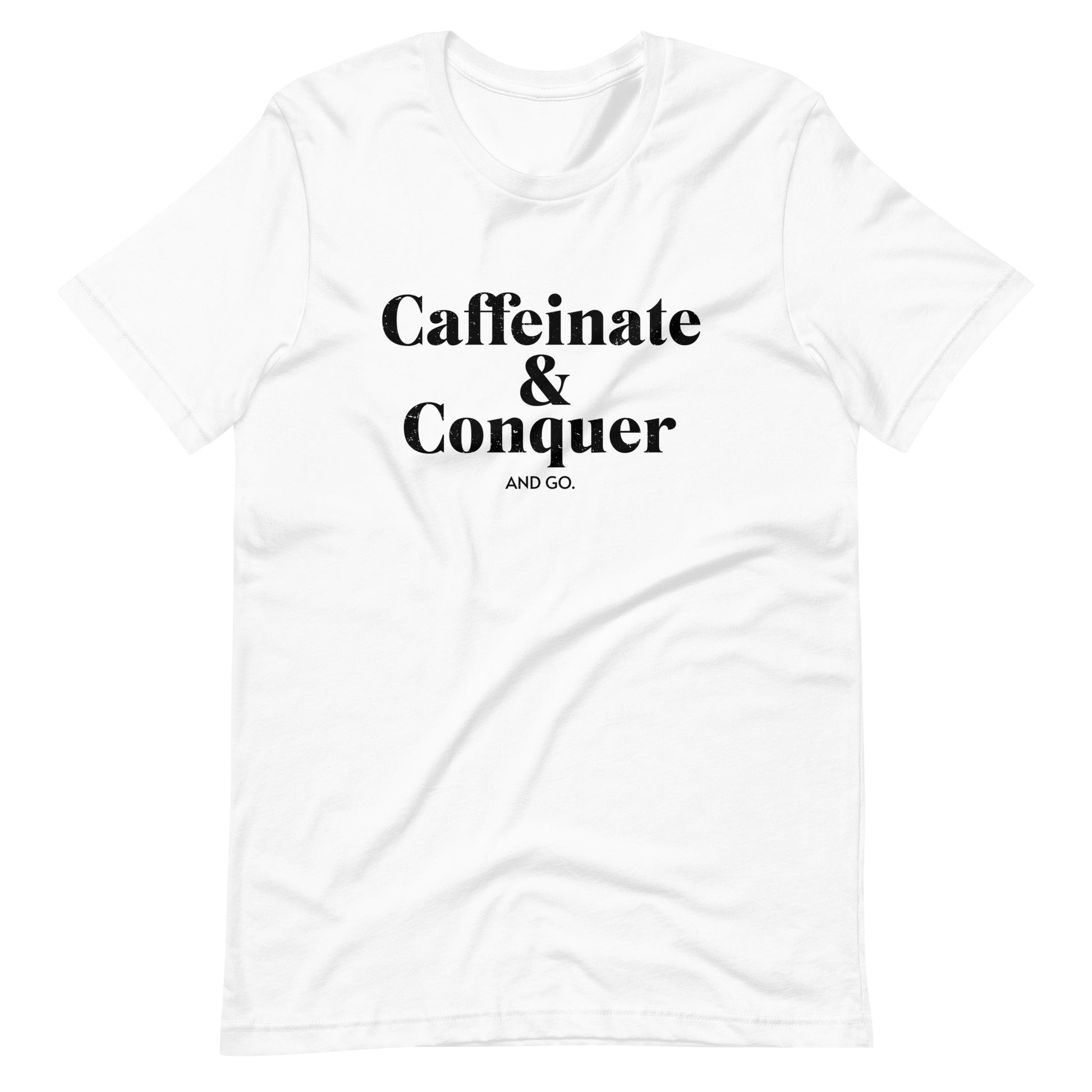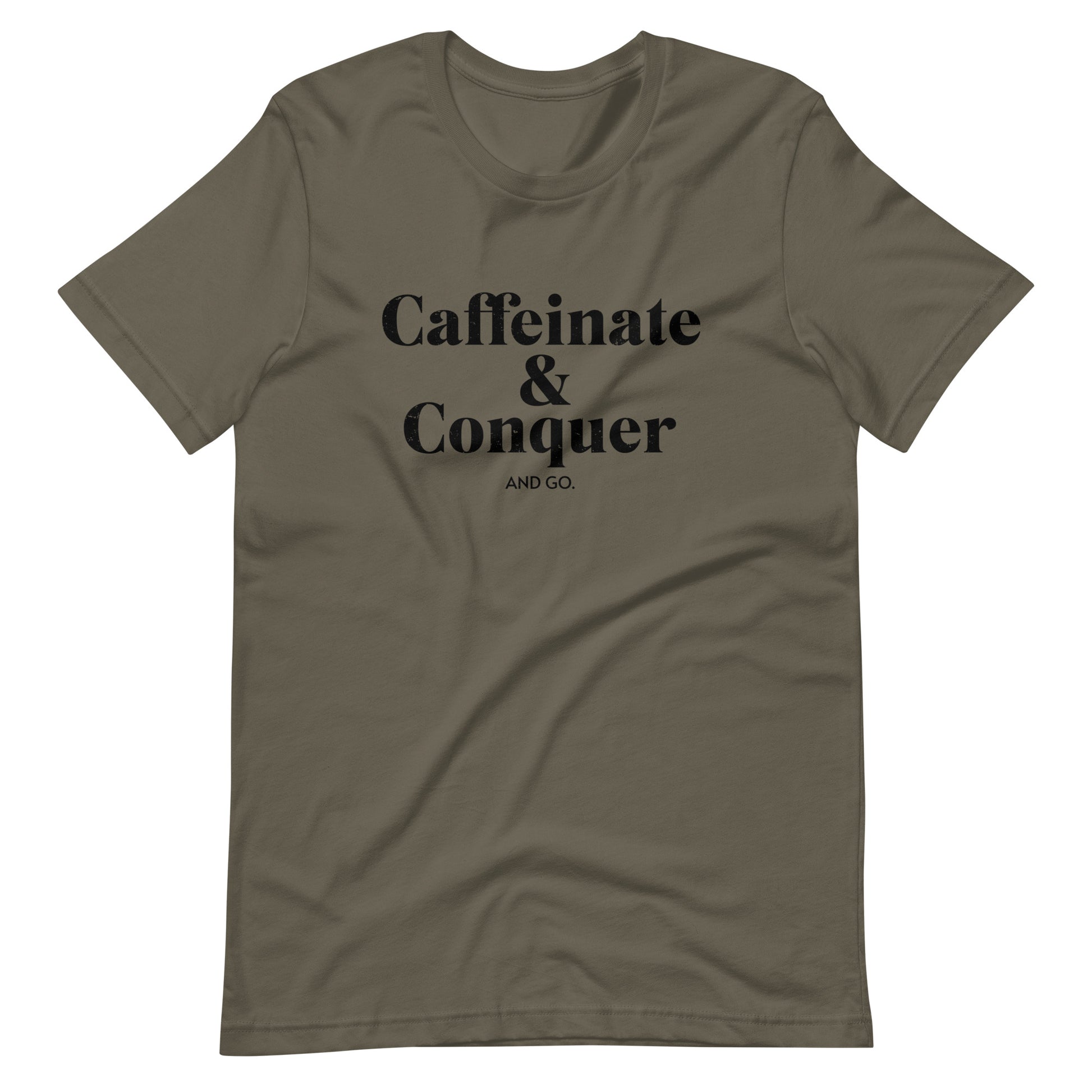 Perfect for coffee lovers, go-getters, and anyone with a passion for taking charge. Step out in style and conquer the world with every stride in our 'Caffeinate and Conquer' tee!