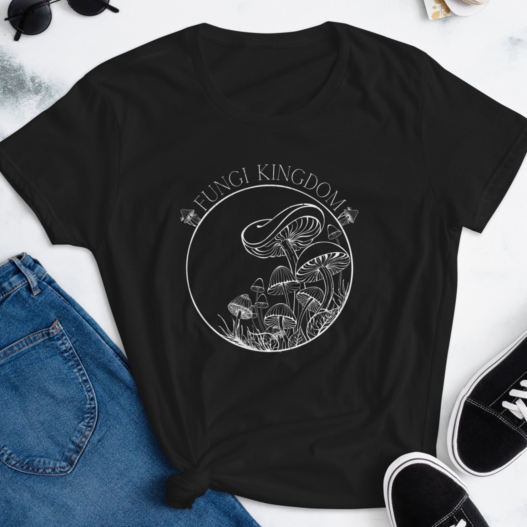 Embrace your passion for mushrooms and their myriad health benefits with our charming "Fungi Kingdom" Women's T-Shirt. More than just a garment, it's a declaration of your love for these fascinating organisms and their remarkable contribution to well-being. Wear it proudly, and let the world know you're a proud member of the "Fungi Kingdom!"