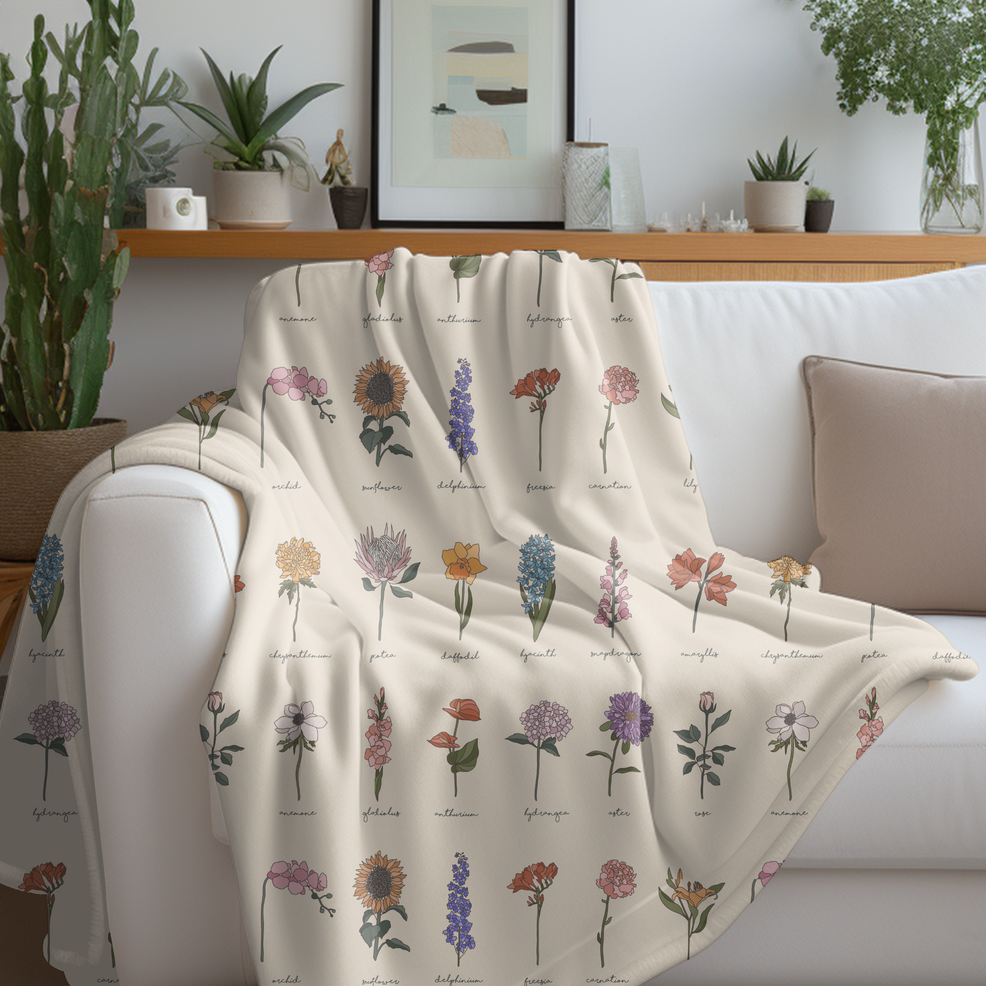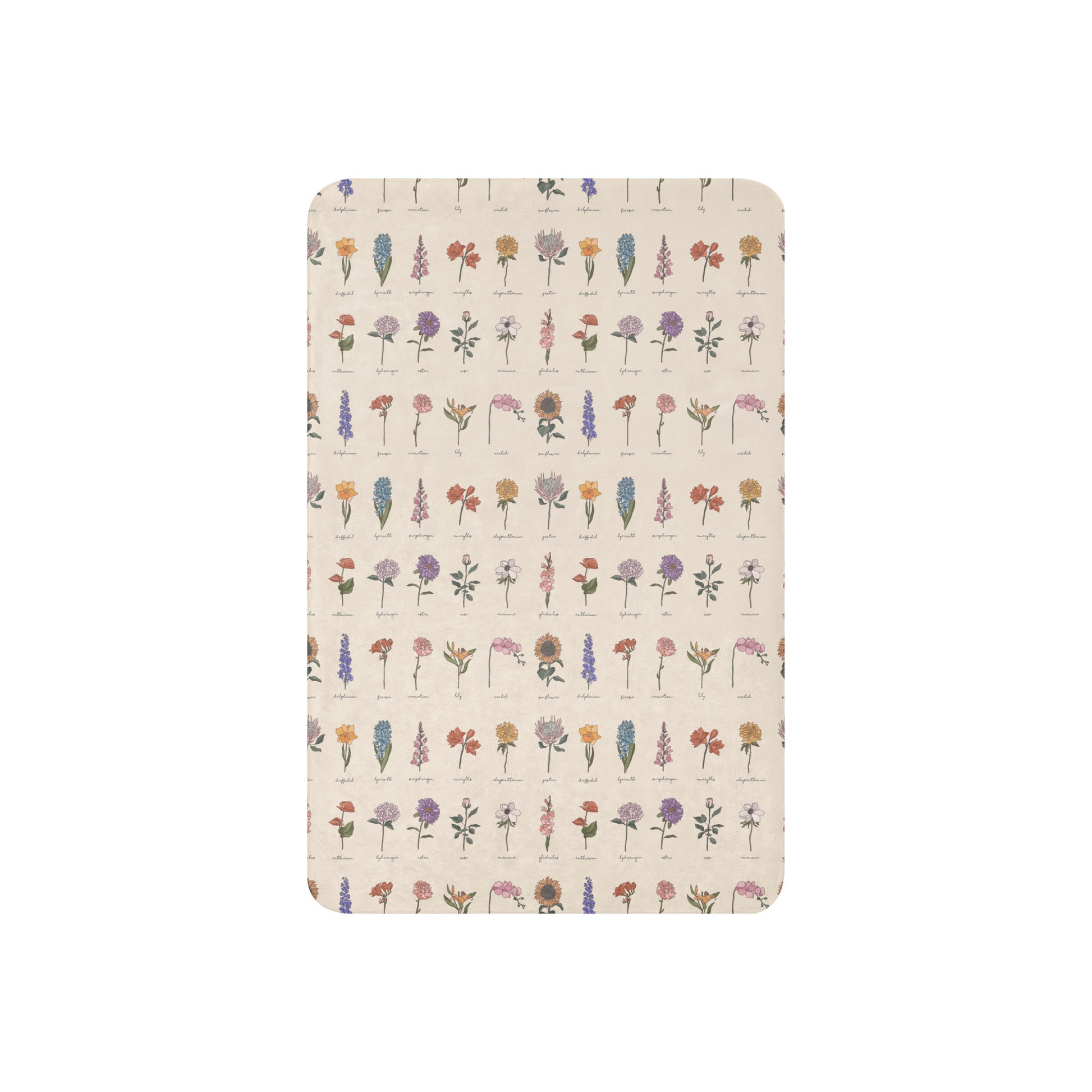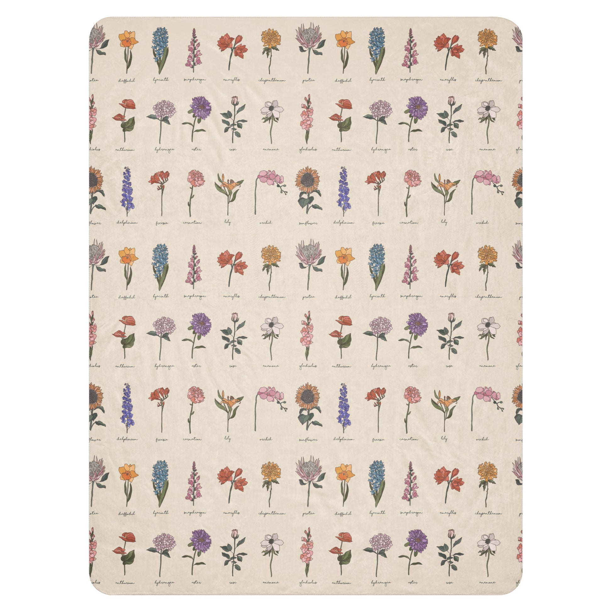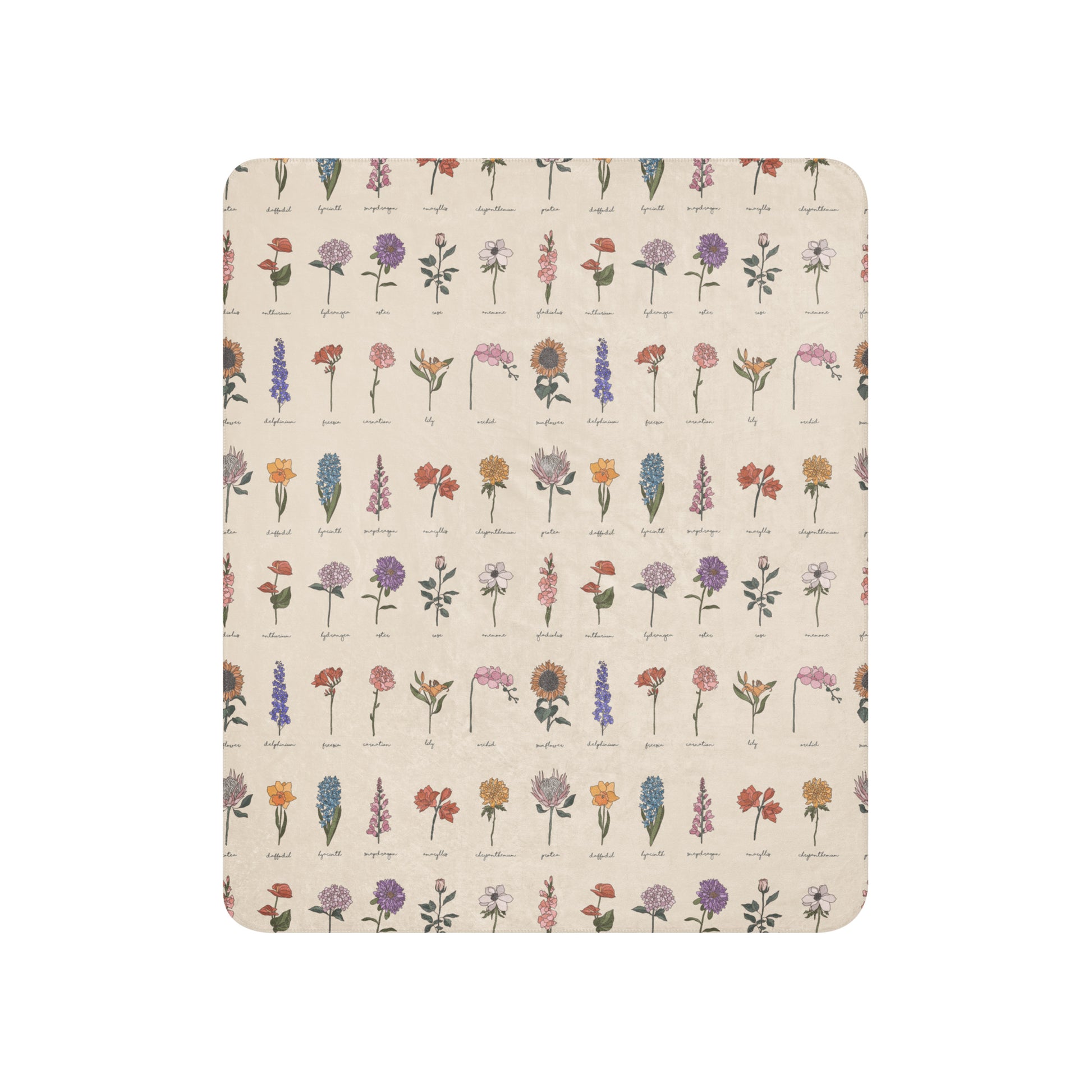 Introducing our exquisite "Maisey" Sherpa Blanket, where the magic of the holiday season meets unparalleled comfort. This luxurious blanket combines a plushie feel with exceptional softness, perfect for keeping you warm. Featuring a delightful array of large, uniquely designed flowers with their names underneath, it brings the garden inside and celebrates your love of flowers.